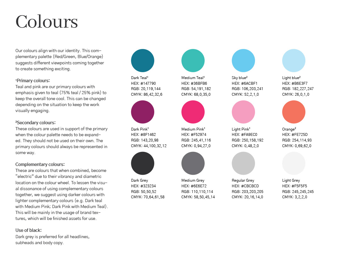 Dandelion is a digital transformation company and a Google partner. They wanted to break from their google-inspired roots to create an ownable brand. The mirroring and convergence of the complementary coloured shapes represents the pairing of the team with their clients at every level to create their solutions. The brand font reinforces a shift to a more sophisticated direction.